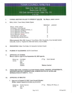 Council Minutes by Town Clerk | Sep 9, 2025 Download File Type: pdf Categories: Gate City Council Minutes Downloads: 1
